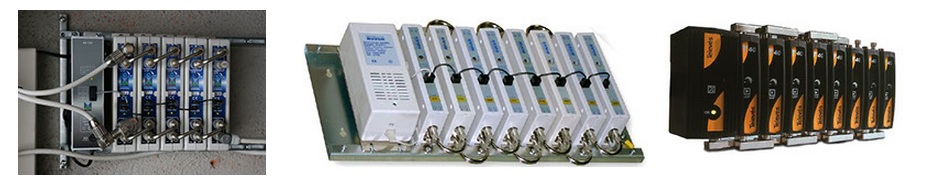 Son los amplificadores con un aspecto como el que se indica en la imágenes. Se trata de amplificadores que amplifican cada frecuencia de forma individual, para poder dar un ajuste individual y asegurar la mejor señal en toda la banda de frecuencias. Se utilizan generalmente para comunidades de más de 20 vecinos, aunque existen montadas en comunidades con menos vecinos.