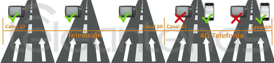 Debido a la gran demanda de velocidad y mayor uso de nuestros terminales móviles, cada vez necesitamos  que nuestro “faceboock” vaya más rápido, que el video que veo en el youtub cargue casi instantáneamente, etc,  y para ello se crea el denominado 4G de telefonía que aporta mayor velocidad en nuestra navegación móvil. Entonces, por diversas cuestiones técnicas hacen que los carriles de la autopista mencionada anteriormente que comprenden del carril 61 al 69 sean los más favorables para transportar la señal de telefonía 4G , pero… ¡¡ si esos carriles están ocupados trasportando mi serie de televisión favorita!!. No hay problema, como tenemos una autopista con muchos carriles libres,  el nuevo dividendo hace que se reestructure, liberando esos carriles validos para la telefonía  4G y que ahora ocupa la televisión (del 61 al 69) y desplazando la televisión  a carriles más bajos de la autopista que actualmente no circulaba nadie, una vez vaciado dichos carriles (a partir del 31 de marzo), la señal de telefonía 4G podrá circular sin problema por los carriles que anteriormente transmitían datos de televisión, mejorando la velocidad en nuestros terminales móviles.